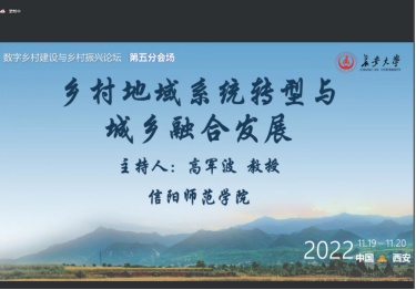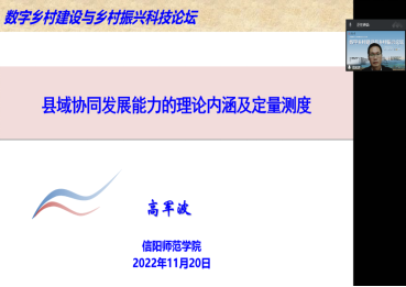 11月20日,由中国地理学会农业地理与乡村发展专业委员会、长安大学等单位联合主办的“数字乡村建设与乡村振兴”科技论坛在西安召开,会议以在线形式召开。必一体育高军波教授在第五分会场“乡村地域系统转型与城乡融合发展”参会,做了题为“县域协同发展能力的理论内涵及定量测度”报告,并应邀作为下半场会议主持人。